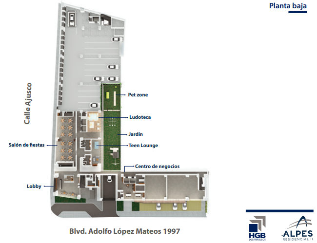 Alpes Residencial II será una edificación sobresaliente por su diseño arquitectónico. Lo conformarán dos torres: una con vista a Periférico y la otra a la Calle de Ajusco, contará con 15 niveles y 280 departamentos. Proyecto ubicado al Sur de la Ciudad en Blvd. Adolfo López Mateos No. 1997, Colonia Los Alpes, Alcaldía Álvaro Obregón, en CDMX.